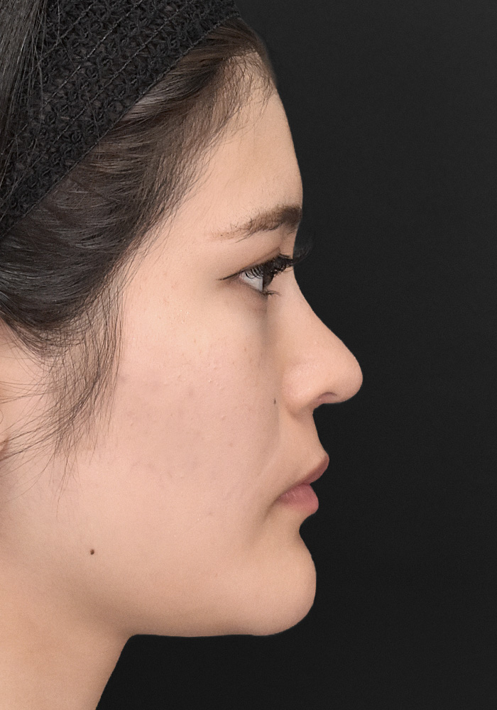 鼻フルコースで鼻先を整え、プロテーゼ挿入で鼻筋に自然な高さを出すことで、Eラインが整いお顔全体に立体感が生まれています。
