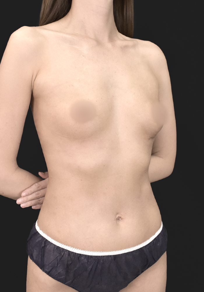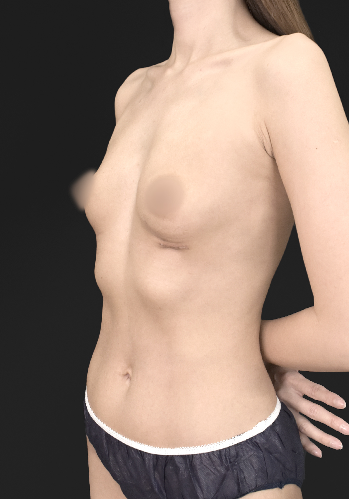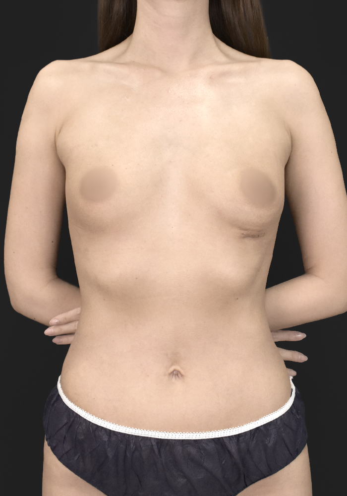 除去後のバストは組織が薄くなりがちですが、適切な層へ配置することで、不自然な段差のない滑らかな盛り上がりを実現しています。